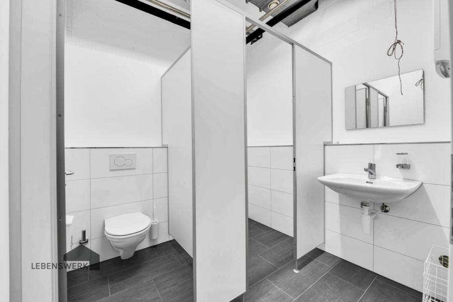 Die Gewerbefläche verfügt eine eigene Heizung, die über Radiatoren angesteuert werden. Die Storenanlage wird elektrisch betrieben. Eine Lüftungsanlage kann eingebunden werden. Das Objekt wird im Rohbau vermietet, sodass Sie ihre eigene Gestaltung aufnehmen können. Die Sanitärräume sind gefliest, die Bodenfläche im Hauptraum wurde mit einer hochwertigen Bodenmasse versiegelt. Die Räume glänzen in einem neutralen, weissen Anstrich.