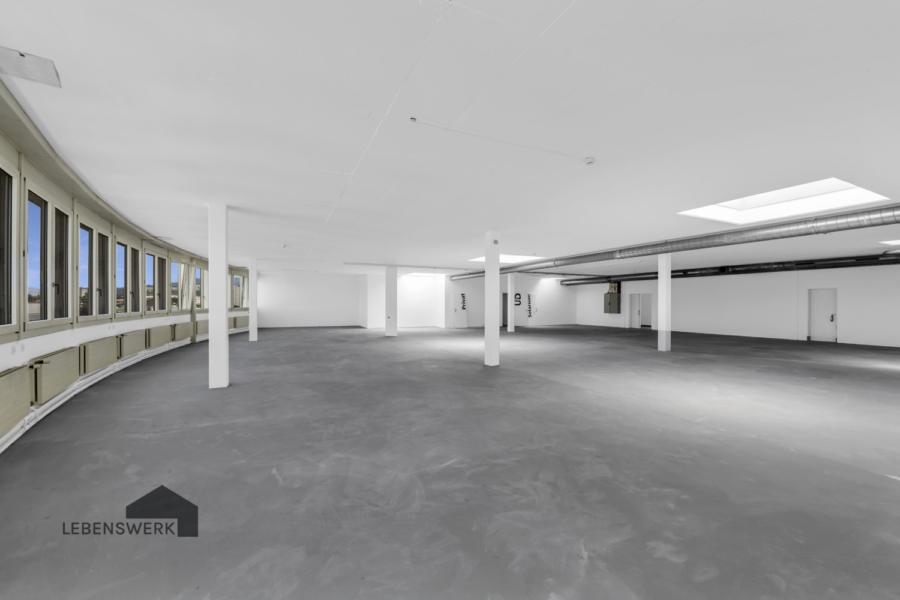 Die Gewerbefläche umfasst insgesamt ca. 440 m² und befindet sich in einem modernen Gebäudekomplex als Wohn- und Geschäftshaus. Die Fläche ist aufgeteilt in einen grossen, offenen Raum sowie drei WC-Anlagen. Ein Lastenaufzug mit Rampe und einer Tragfähigkeit von 2,5 Tonnen bringt Ihnen selbst die schwersten Objekte bequem dorthin. Eine variable Aufteilung ab einer Teilfläche von 200 Quadratmeter könnte realisiert werden. Die Tragfähigkeit des Bodens beträgt ca. 500 Kg pro m2.