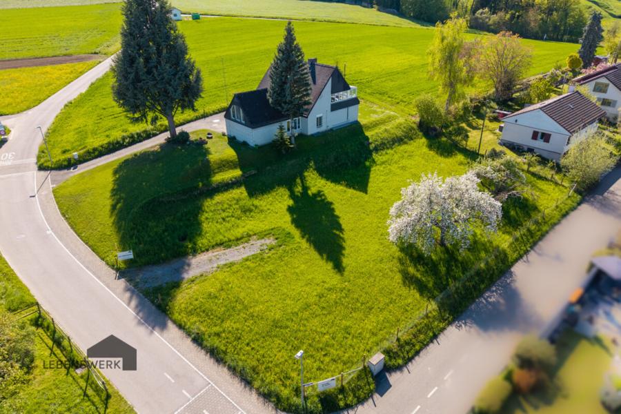 Die gesamte Grundstücksfläche beträgt 2’182 m² (1’106 m² + 1’076 m²) und eröffnet vielfältige Nutzungsmöglichkeiten – sei es zum Wohnen, Erweitern oder als langfristige Investition.