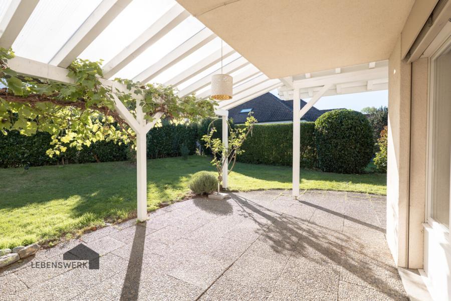 • Sonniger Sitzplatz unter Weintrauben mit direktem Zugang zum Wohn- und Essbereich