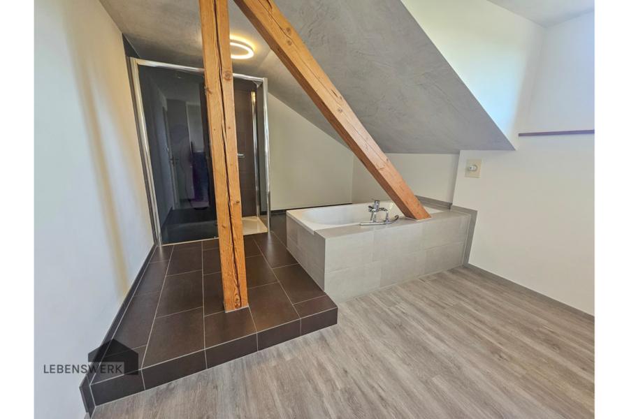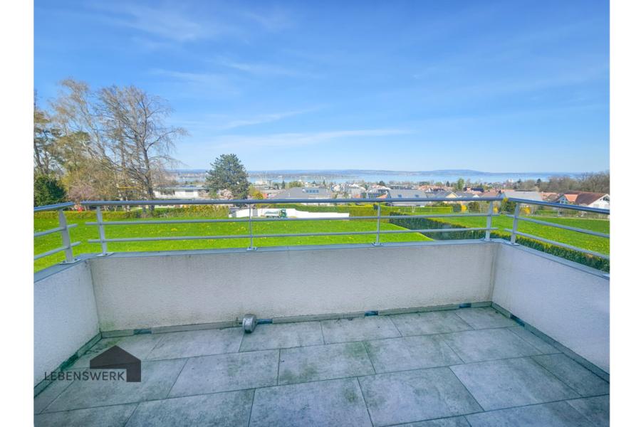 Im Obergeschoss erwartet Sie ein stilvolles Masterbad mit freistehender Badewanne, Dusche und Lavabo. Zwei weitere Zimmer bieten flexible Nutzungsmöglichkeiten: Eines davon ist besonders grosszügig geschnitten und verfügt zusätzlich über einen separaten Ankleide- oder Abstellraum. Das zweite Zimmer liegt in nordöstlicher Ausrichtung und begeistert mit einem eigenen Balkon – ideal als Kinder- oder Jugendzimmer. Von hier aus geniessen Sie einen weiten Blick über grüne Wiesen, die Stadt Kreuzlingen und bis hin zum glitzernden Bodensee.