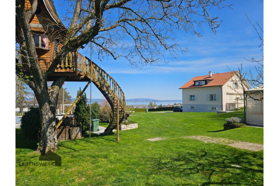 Im Untergeschoss stehen drei zusätzliche Kellerräume zur Verfügung: Zwei beheizte Räume (derzeit aufgrund von Feuchtigkeit nicht als Wohnräume genutzt) sowie ein Wasch-/Heizraum mit Lavabo. Für Ihre Fahrzeuge steht eine Einzelgarage mit direktem Zugang ins Haus zur Verfügung. Der Garten ist ein echtes Paradies für Gross und Klein: Ein riesiges Trampolin, ein liebevoll gestaltetes Gartenhaus, eine Nestschaukel sowie ein märchenhaftes Baumhaus mit Wendeltreppe sorgen für Begeisterung. Gleichzeitig bietet das grosszügige Grundstück viel Platz für gesellige Stunden mit Familie und Freunden sowie für Hobbygärtner mit grünem Daumen. Dank der rundum verlaufenden Hecken geniessen Sie hier maximale Privatsphäre. Die Nebenkosten betragen ca. CHF 300.– pro Monat und werden separat von der Mietpartei übernommen.