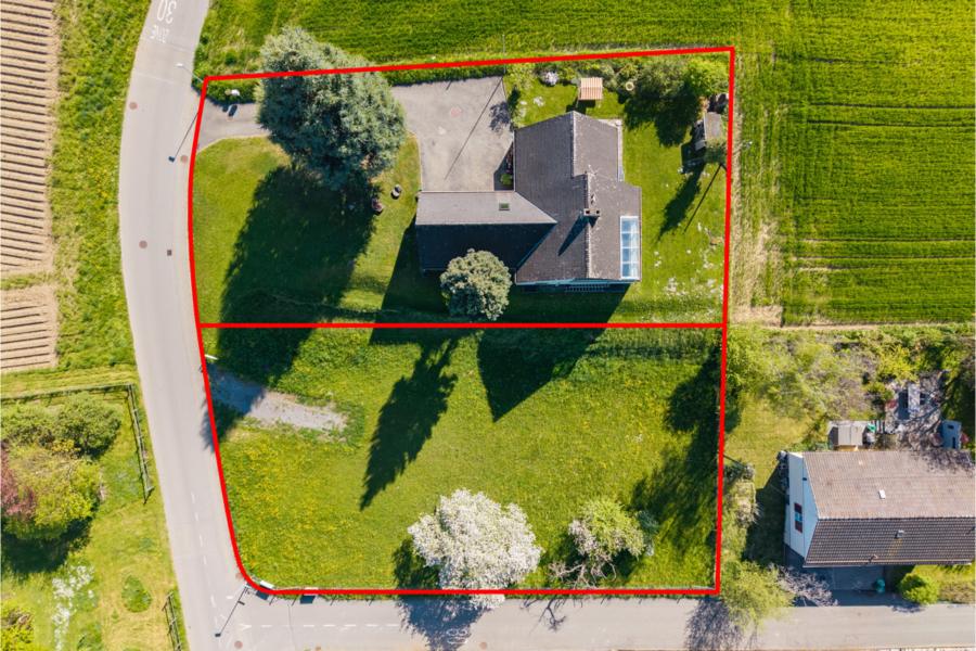 Diese besondere Gelegenheit vereint Wohnen, Investieren und Entwickeln auf ideale Weise: Zur Verfügung stehen zwei Parzellen – eine mit bestehendem Einfamilienhaus (1’106 m²) sowie eine separate Baulandparzelle (1’076 m²). Beide Einheiten können gemeinsam oder auch einzeln erworben werden und bieten dadurch maximale Flexibilität.