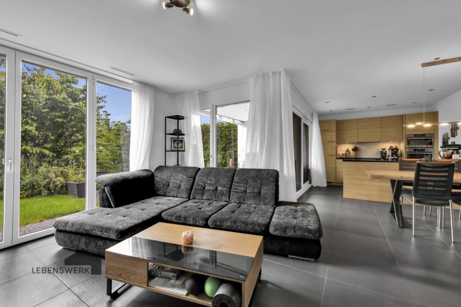 Die helle 2.5-Zimmer-Gartenwohnung ist ein gemütliches Zuhause mit viel Tageslicht und einem direkten Zugang zum alleinigen Garten. Die Wohnung verfügt über ein geräumiges Wohnzimmer mit grossen Fenstern, die viel natürliches Licht hereinlassen und einen schönen Blick auf den Garten bieten. Das Schlafzimmer ist ebenfalls hell und geräumig und bietet ausreichend Platz für ein Doppelbett, einen Kleiderschrank und ein Arbeitsplatz. Die Küche ist modern und funktional eingerichtet und verfügt über hochwertige V-Zug Geräte. Das Badezimmer ist mit einer Dusche, einer Badewanne, einem Lavabo und einem WC grosszügig ausgestattet. Das Mehrfamilienhaus ist Minergie nach SIA -Norm 261 zertifiziert. Eine kontrollierte Komfortlüftung für einen angenehmen Luftaustausch ist in jeder Wohnung separat installiert. Der Tiefgaragenstellplatz Nr. 10 gehört zur Wohnung und kann zzgl. für CHF 35.000.- erworben werden.