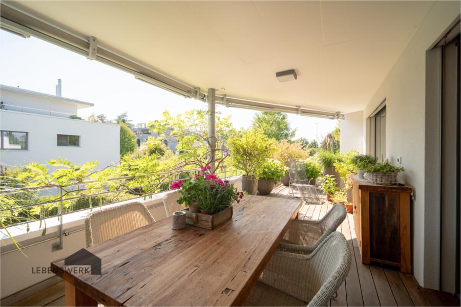 In einem gepflegten, ruhigen Wohnquartier mit nur zwei Mehrfamilienhäusern à fünf Einheiten liegt diese grosszügige 5.5-Zimmer-Wohnung im 1. Obergeschoss – idyllisch gelegen und dennoch zentrumsnah. Ein Ort, der Privatsphäre, Stil und Wohnqualität vereint. Die rund 216 m² Wohnfläche überzeugen mit einem durchdachten Grundriss, lichtdurchfluteten Räumen und einer hochwertigen Ausstattung. Herzstück der Wohnung ist der offen gestaltete Wohn- und Essbereich mit stimmungsvollem Cheminée. Grosszügig und einladend gestaltet, bietet er direkten Zugang zur sonnigen Südterrasse – ausgestattet mit zwei Sonnenmarkisen und einem praktischen Bewässerungssystem – perfekt für entspannte Stunden im Freien. Die offene Küche ist modern ausgestattet und ideal in den Wohnraum integriert. Von hier aus geniessen Sie einen weiten Blick durch grosse Fenster in die angrenzende Freihaltezone – grün, unverbaubar und beruhigend. Die Wohnung verfügt über zwei stilvolle Badezimmer sowie ein separates Gäste-WC. Das Hauptschlafzimmer ist mit einem eleganten en suite Bad ausgestattet, das sowohl Badewanne als auch eine bodenebene Dusche bietet – ein privater Rückzugsort mit Komfort. Im Eingangsbereich, in der Küche und in den Nasszellen sorgen pflegeleichte Plattenböden für Funktionalität. In den Wohn- und Schlafräumen bringt hochwertiger Parkettboden Wärme und Behaglichkeit. Teilweise integrierte Mückengitter ermöglichen auch in den Sommermonaten ein angenehmes Durchlüften. Die technische Ausstattung lässt keine Wünsche offen: Erdwärme in Kombination mit Photovoltaikanlage, Fussbodenheizung und elektrischen Lamellenstoren sorgen für Energieeffizienz, Komfort und Ruhe. Der Lift bringt Sie bequem und barrierearm auf die Wohnetage. Zwei Tiefgaragenplätze sowie ein Aussenstellplatz stehen zusätzlich zum Kaufpreis zur Verfügung (TG-Stellplätze je CHF 35’000.–, Aussenstellplatz CHF 15’000.–). Ein grosszügiger Kellerraum mit Lavabo sowie ein gemeinschaftlich genutzter Velokeller in der Tiefgarage runden das Angebot ab.