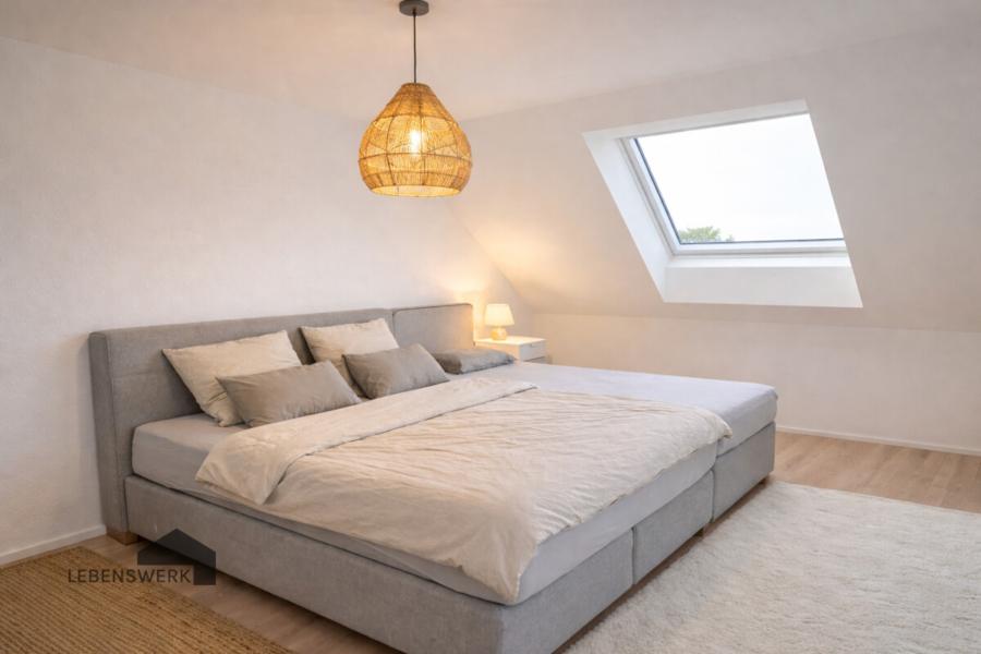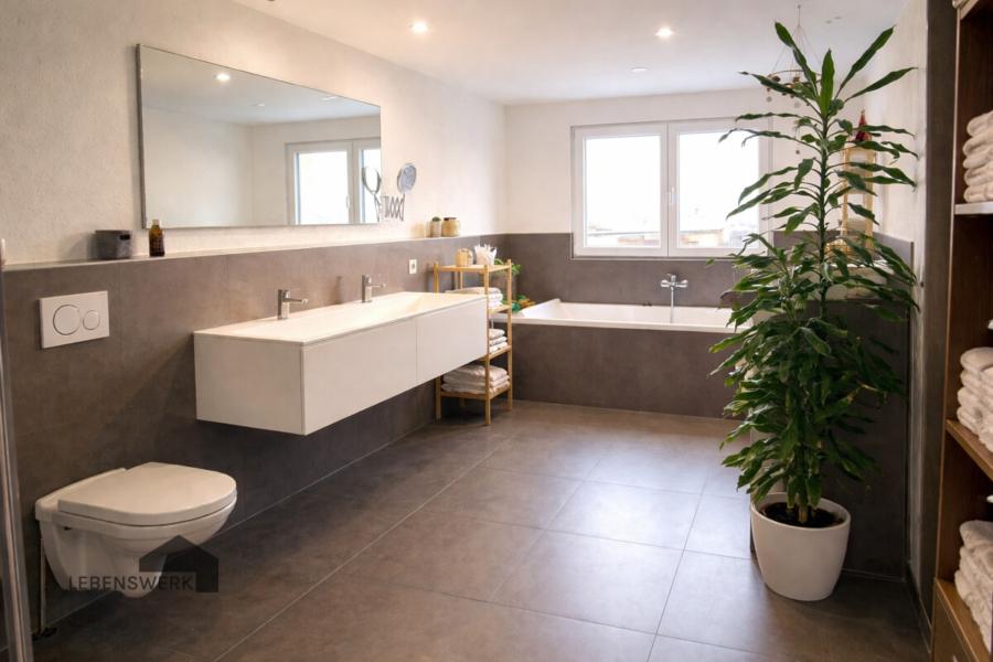 Ein besonderes Highlight ist das sehr grosszügige, modern und hochwertig gestaltete Badezimmer mit Doppellavabo, WC, bodenebener Dusche und grosser Badewanne, das höchsten Komfort und zeitgemässe Ästhetik vereint. Im Dachgeschoss befindet sich ein geräumiges Zimmer, welches sich ohne viel Aufwand in zwei Zimmer umgestalten liesse sowie ein weiteres Badezimmer mit Dusche, WC und Lavabo, welches sich ideal als private Rückzugsebene oder Gästebereich eignet.